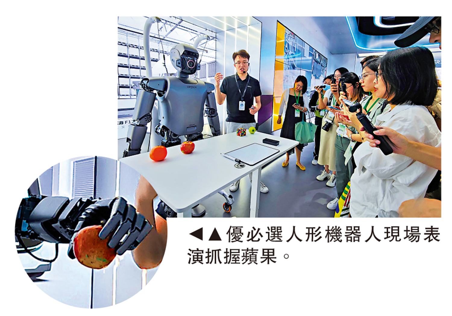 23日下午,2025「機遇灣區」主題採訪活動便來到深圳市優必選科技股份有限公司,深入了解機器人行業的發展現狀和未來導向,迎接採訪團的是人形機器人Walker C和熊貓機器人「優悠」。現場,Walker C向記者團展示了出色的奔跑能力,並「熱情」地與記者一一握手。熊貓機器人「優悠」則表演了視覺識別拿飲料和一套太極拳動作,展現了自己41個高性能伺服驅動關節的靈動性。優必選科技CBO譚旻表示,「我們廣東省有8個萬億級的工業產業集群,我們只要服務好這8個集群,相信通過十年、二十年的努力,我們就能成為第九個萬億集群。」