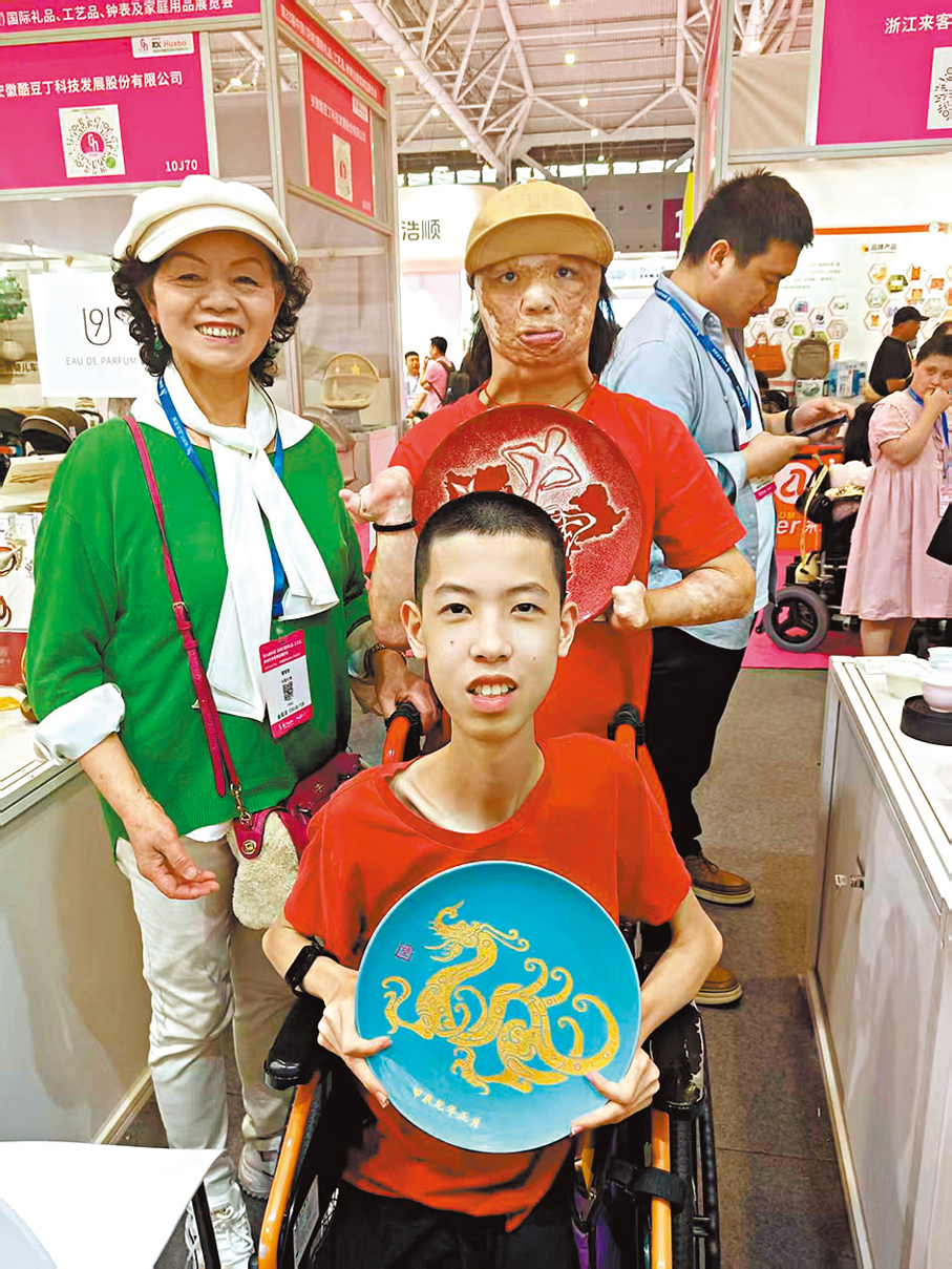 在昨日的深圳禮品展上,記者在中國禮物展區看到,由景德鎮國家工藝美術大師曹愛勤與其他眾多美術設計大師作品一同前來參展,包括富有中國文化的陶瓷、工藝品和禮品等。其中,在曹愛勤帶領教導培養的深圳4位殘疾人員繪製的精美陶瓷等作品,受到不少觀眾的關注和青睞。