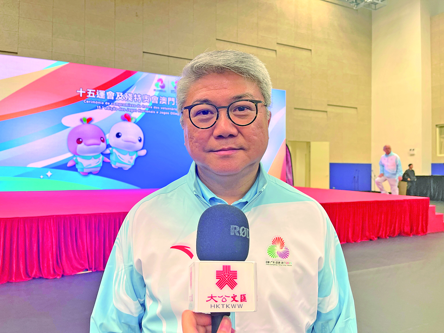 岑浩輝強調,在中央的指導支持、粵港澳三地合作下,澳門必將攜手同心,以熱情態度、專業精神、精心部署,朝着「簡約、安全、精彩」的辦賽目標,共同確保澳門賽區各項工作取得圓滿成功,向海內外展示澳門打造「體育之城」的決心魄力、綜合實力和城市魅力。