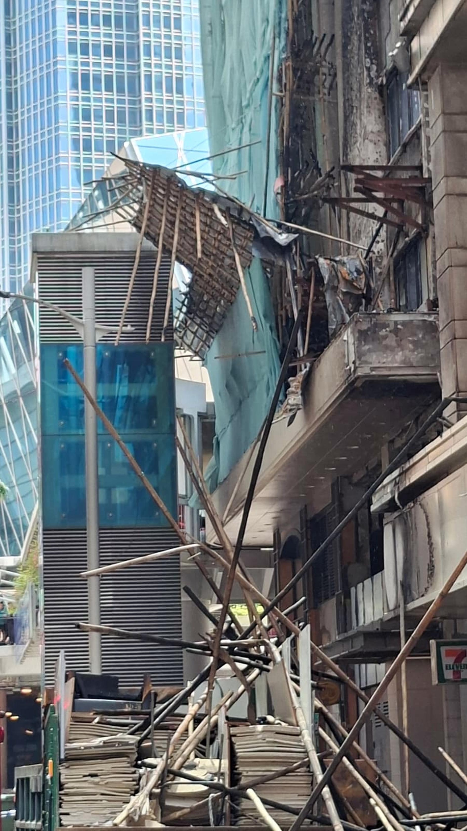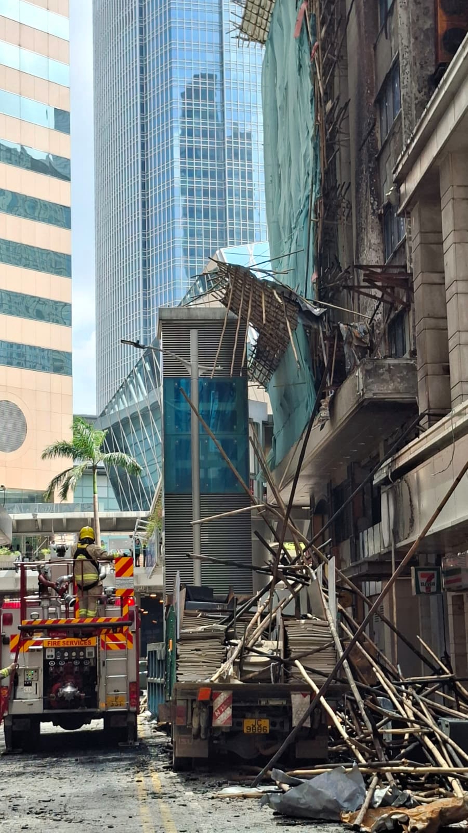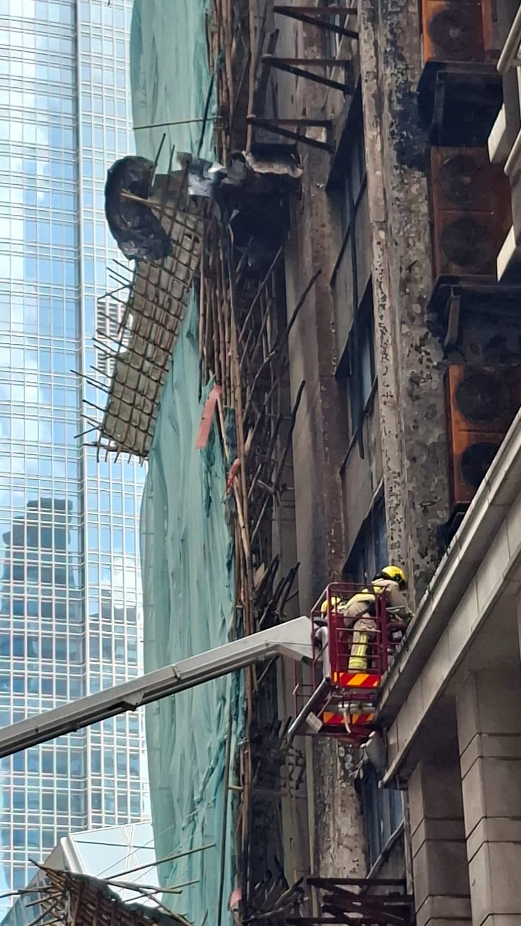 中環三級火|大廈外牆受損竹枝搖搖欲墜