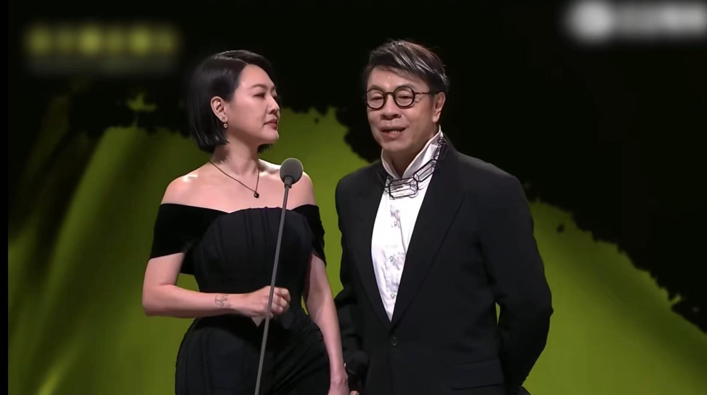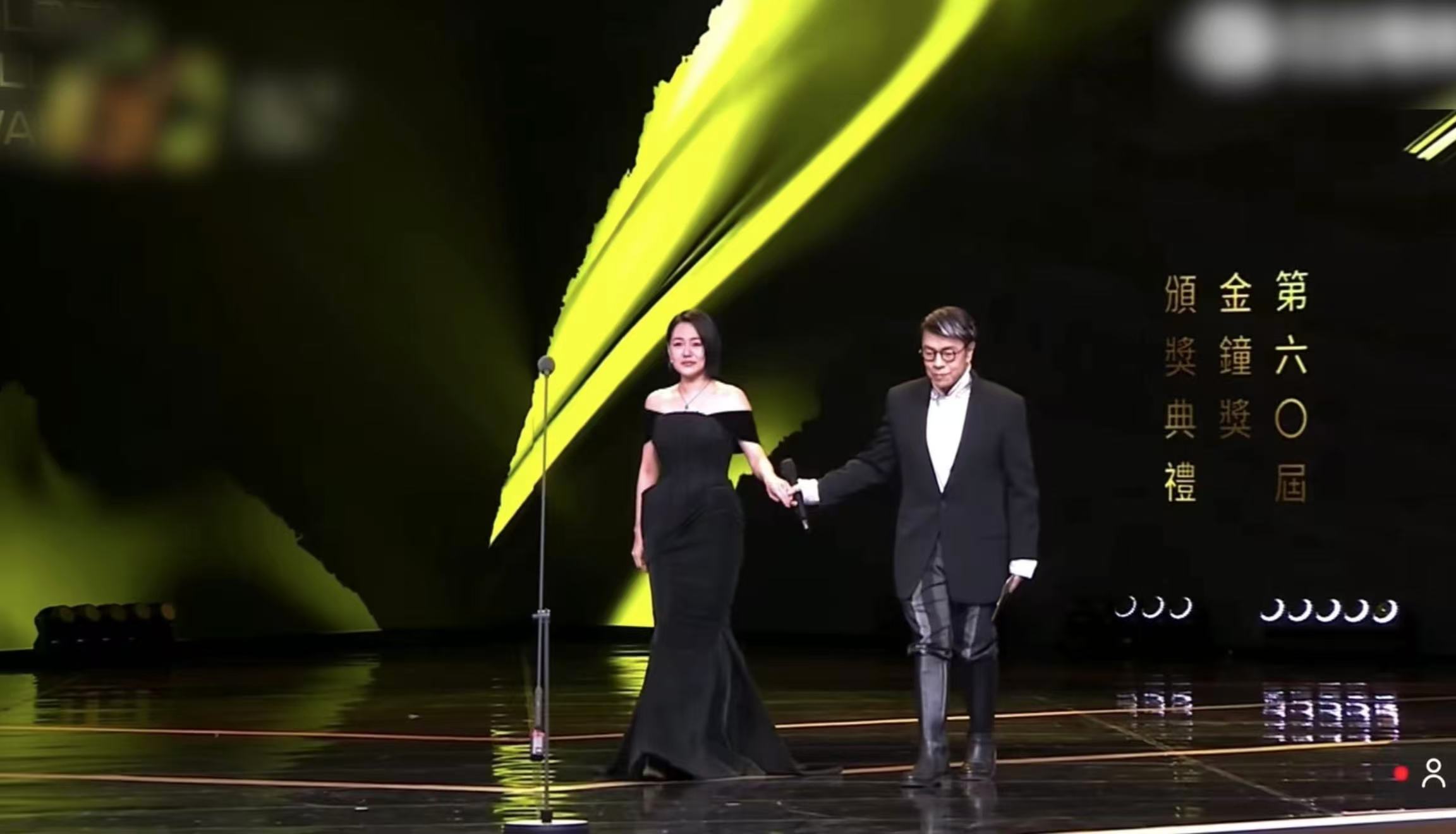 小S與老搭檔蔡康永手牽手走上舞台頒獎。(視頻截圖)