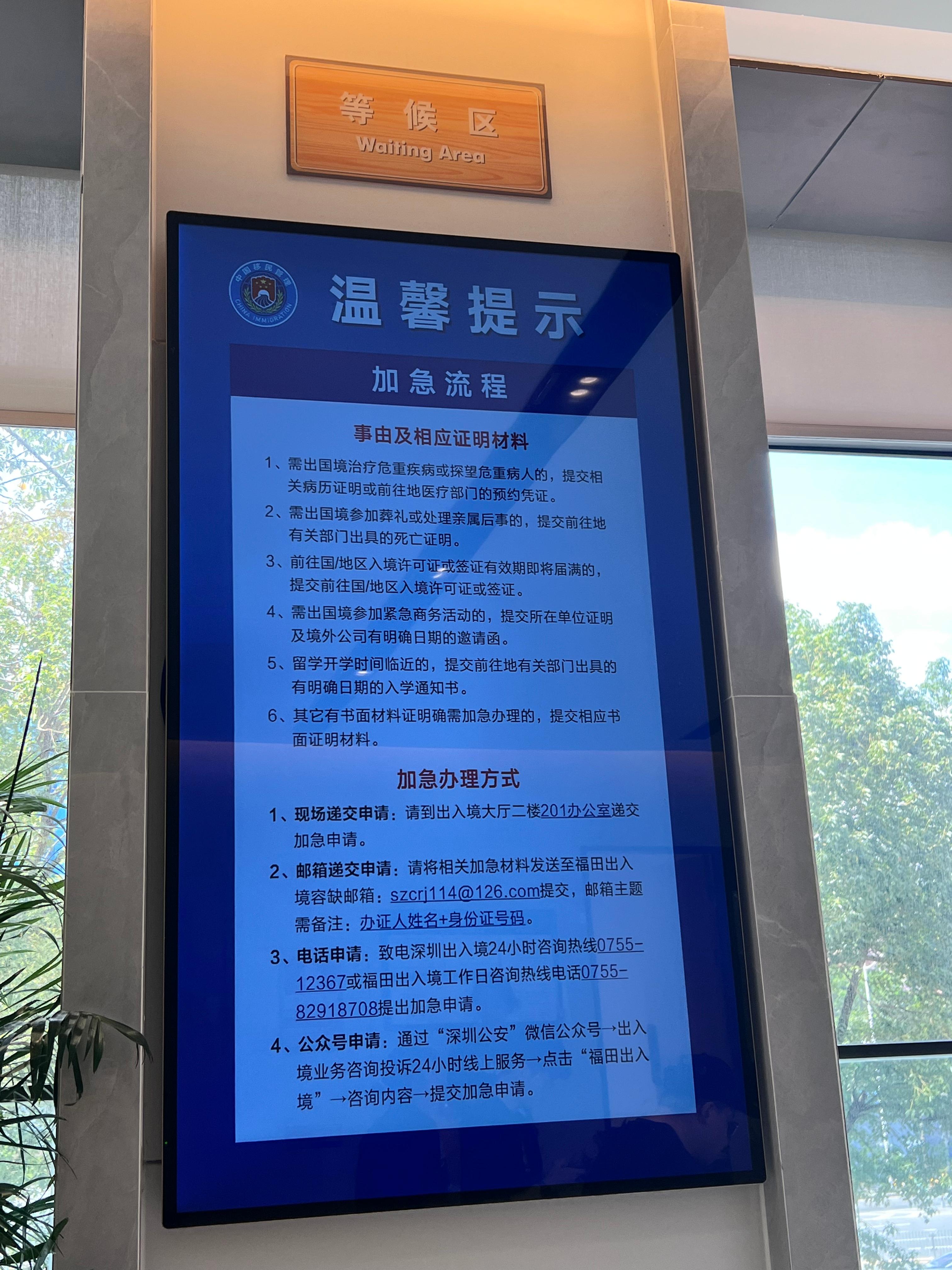 按預約時間到達福田出入境行政大廳(地鐵上沙站出來走幾分鐘就到)。