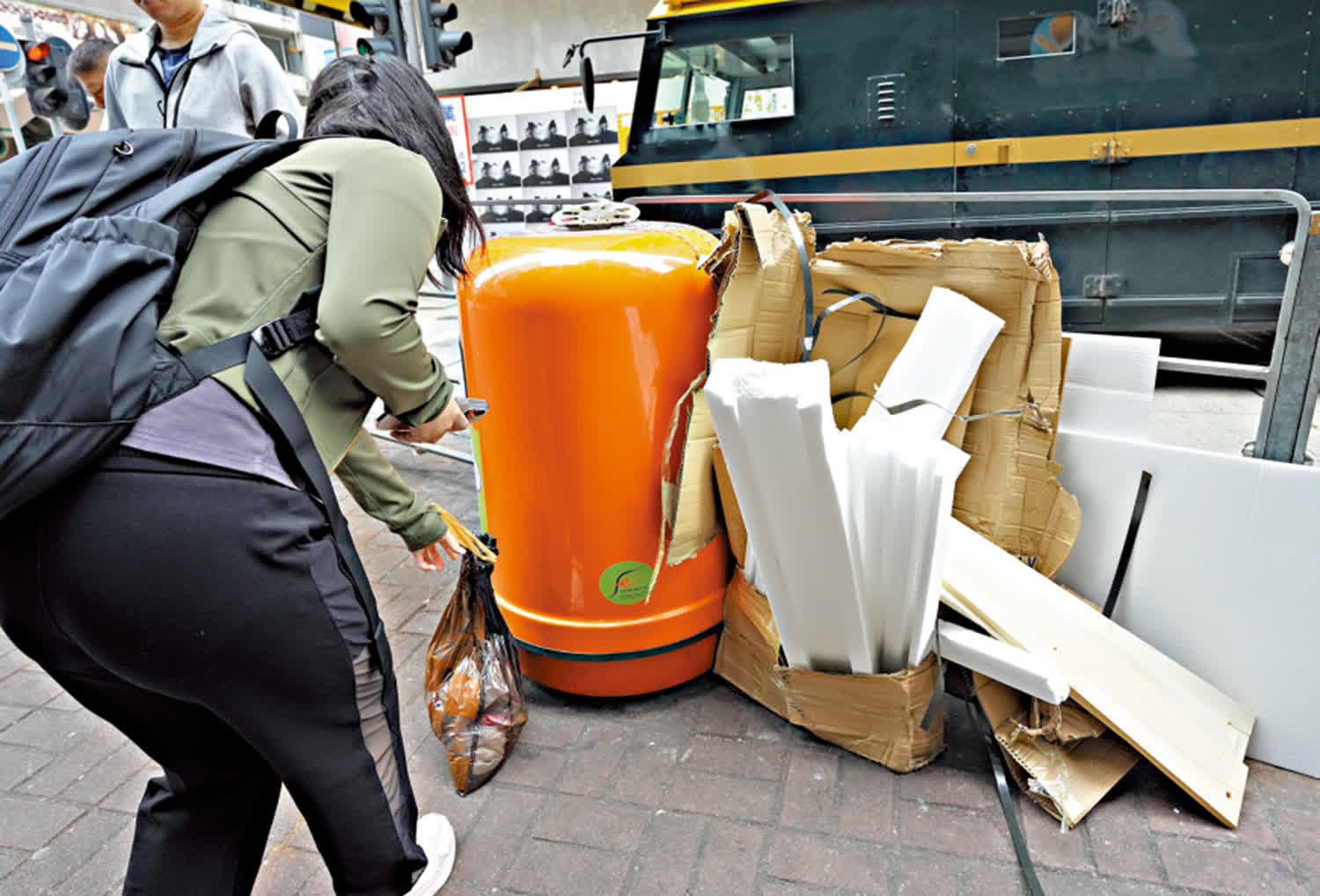 在銅鑼灣,垃圾桶堆滿的情況較少,記者走了10條街道,發現2個垃圾桶有堆滿情況,又有5個垃圾桶旁有垃圾堆放問題,涉及的垃圾種類與油旺區的大致相若。