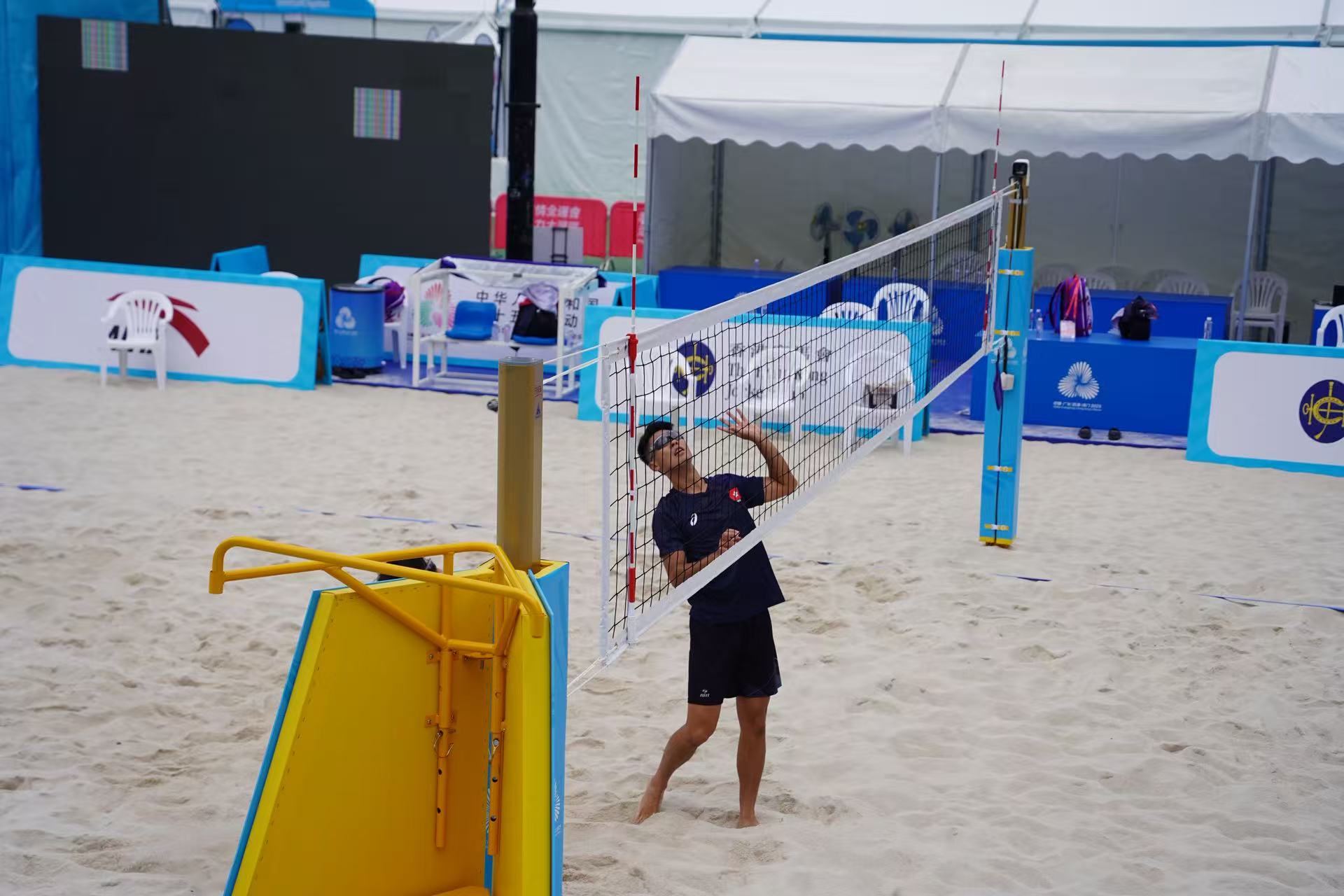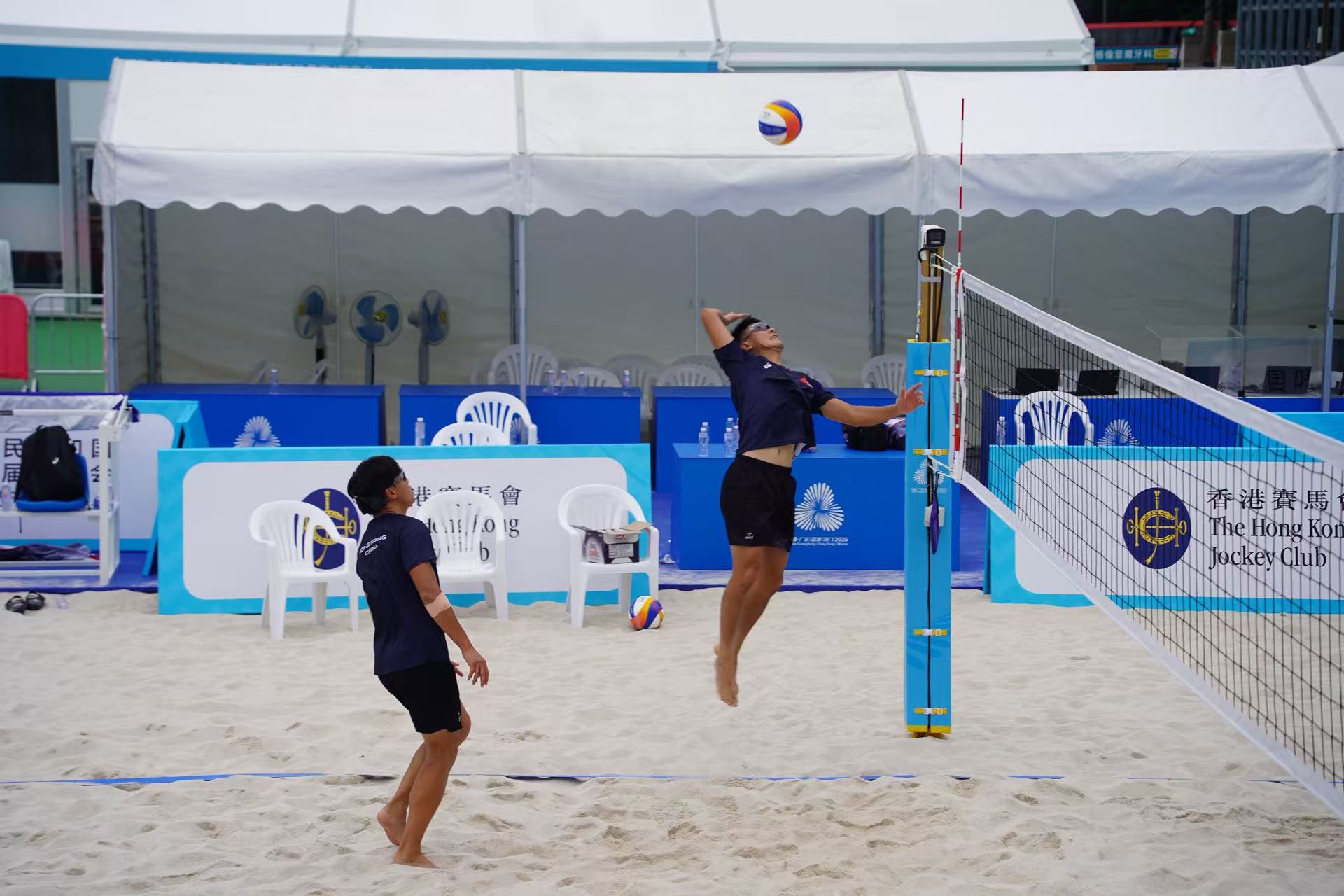 楊德強介紹,維園臨時場地共搭建了7個沙排場,包括主場、副場、熱身場及訓練場,觀眾席、運動員區及媒體採訪區等配套已全部布置完成。他強調,場地是按照全運會最高規格打造,並已通過中國排球協會及香港排球總會專家,以及運動員和教練的檢視,各方對場地品質,包括沙質、燈光等都非常滿意。