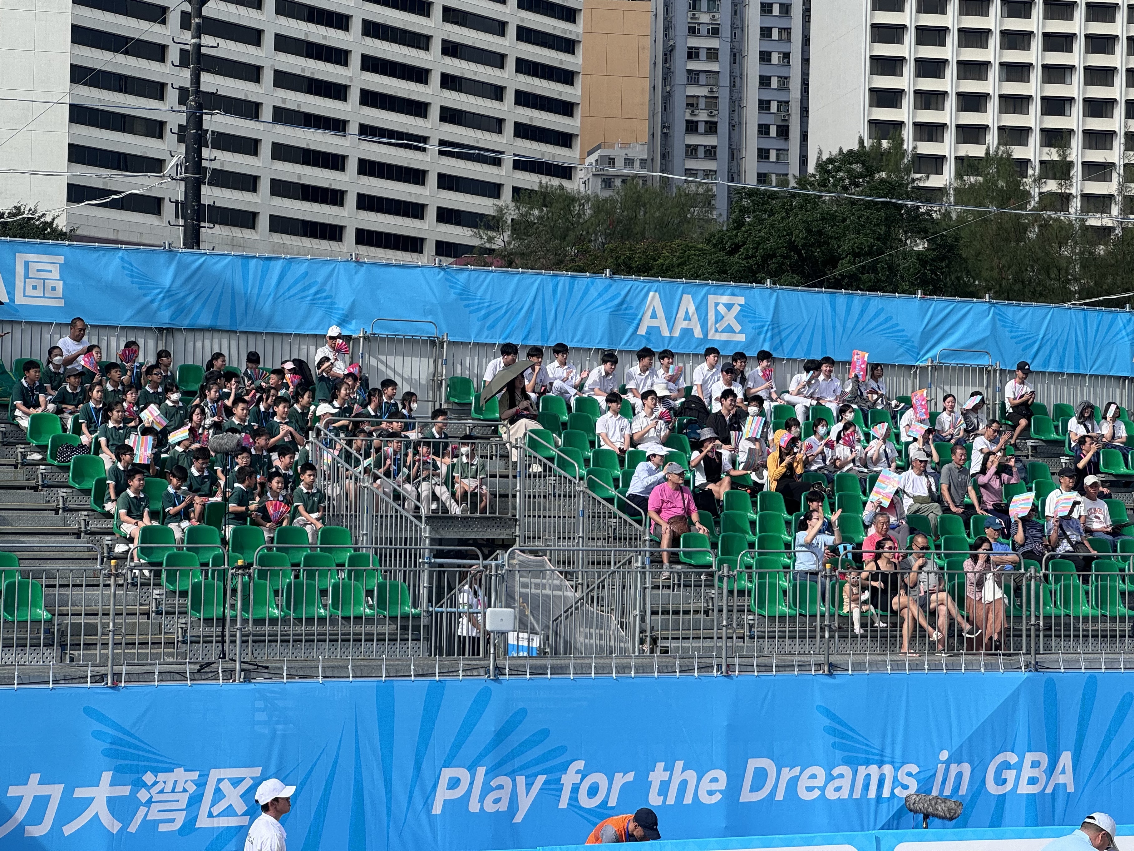 全運會沙灘排球比賽今日上午在維園展開,球場附近人聲鼎沸,已有球迷提前到場。(大公文匯全媒體記者 梁譯尹攝)