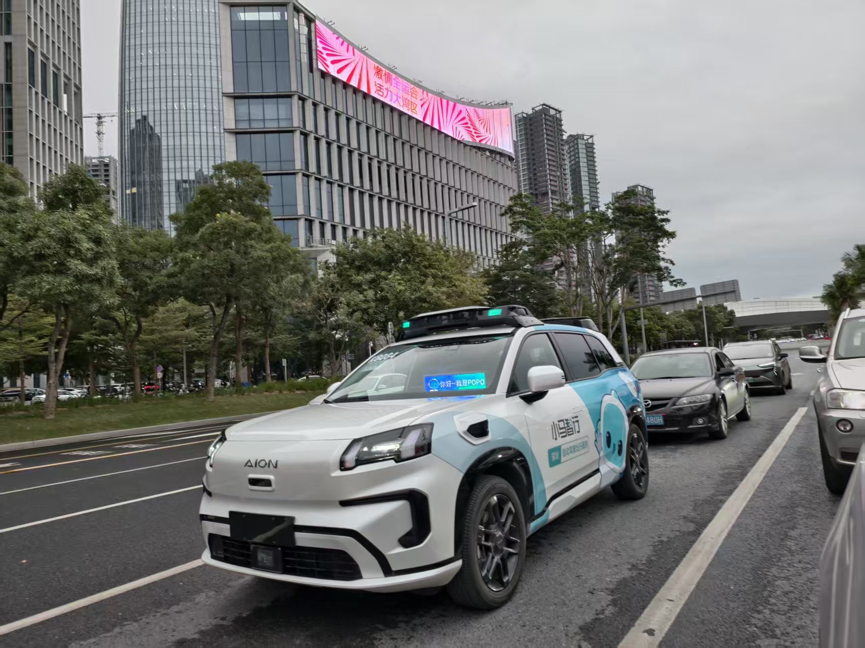 小馬智行在深圳投放的Robotaxi在街道上運行。(大公文匯網 記者 胡永愛攝)