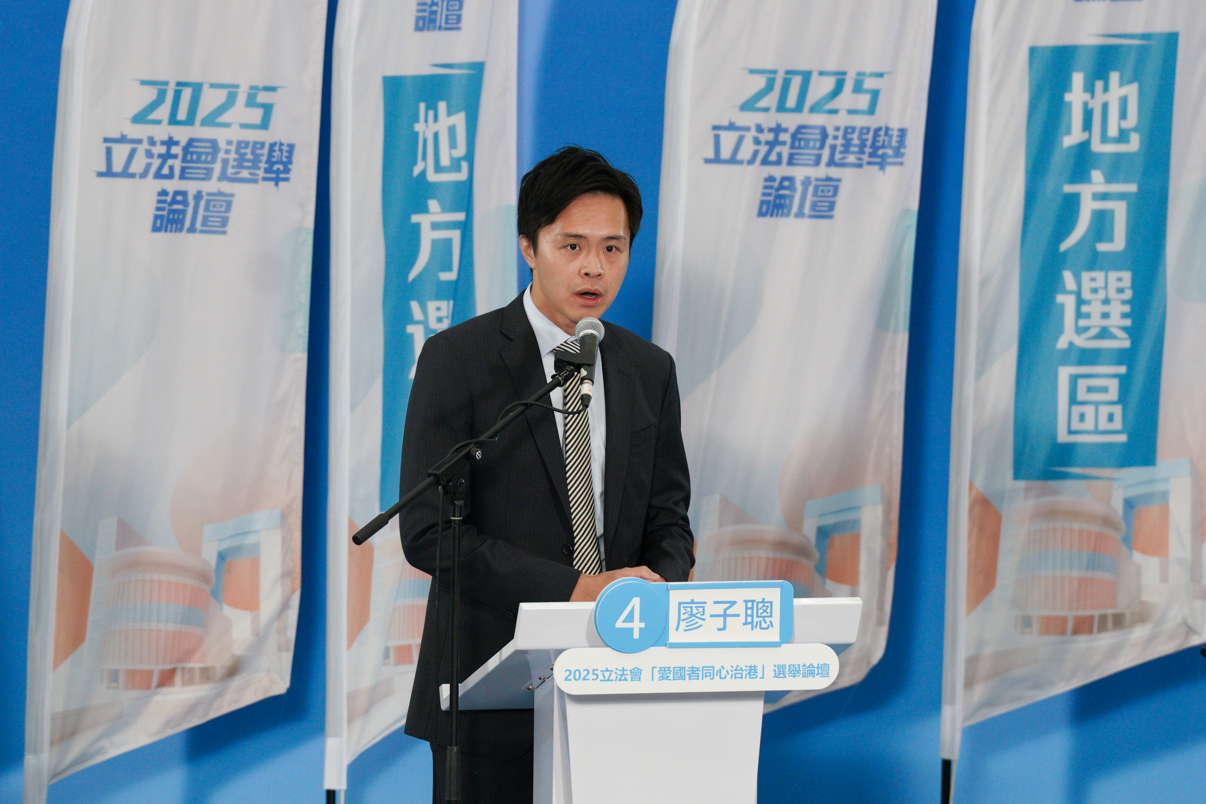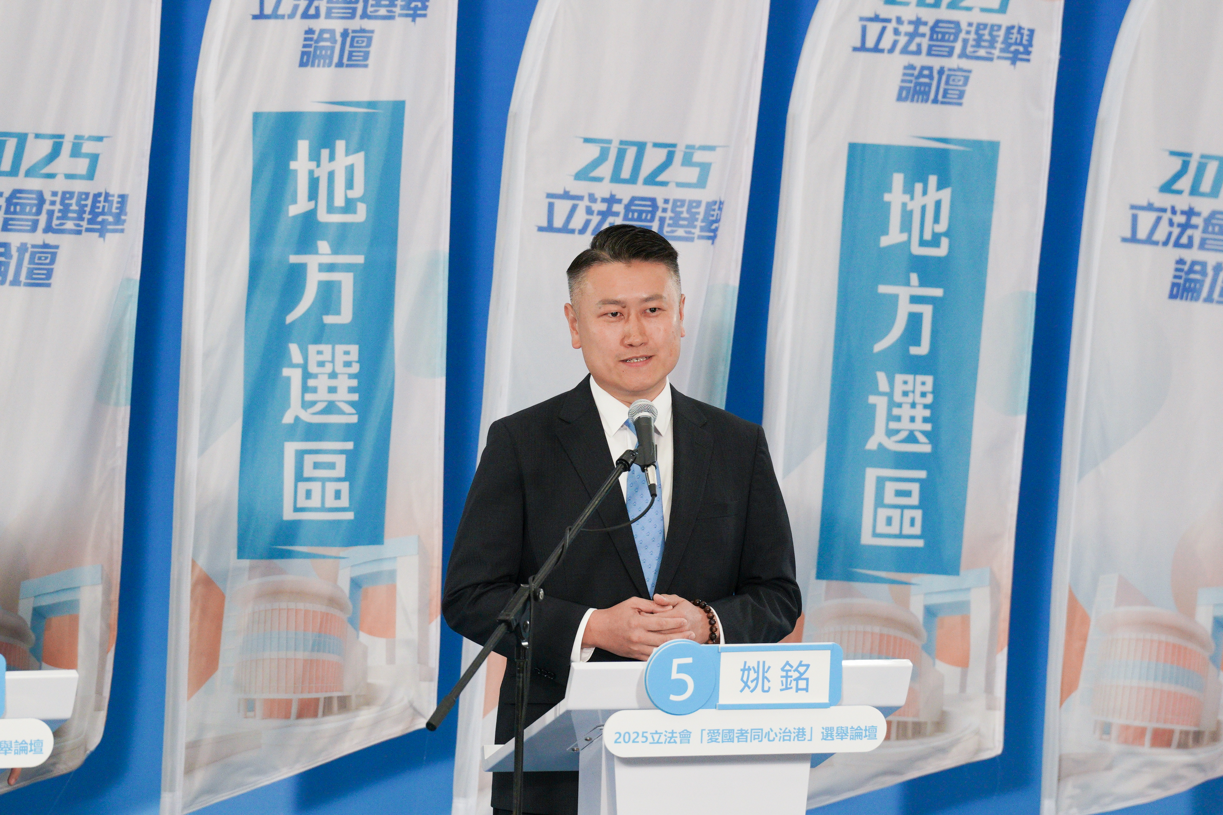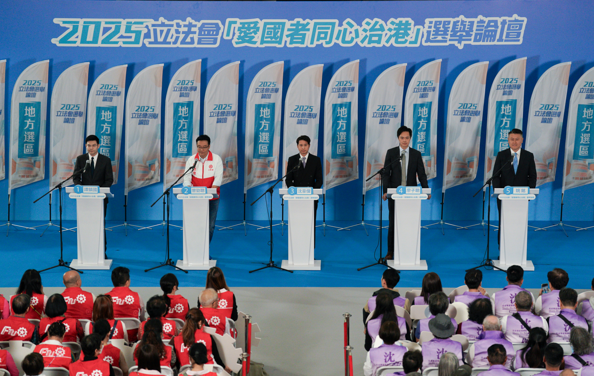 【識港網訊】香港第八屆立法會選舉將於12月7日舉行投票。特區政府於11月11日至11月30日舉辦共39場2025立法會「愛國者同心治港」選舉論壇,邀請各地方選區、功能界別和選舉委員會界別的候選人向其選區或界別的選民和市民介紹其政綱理念及對多項社會議題的看法。今日(12日)上午9時30分,「新界北地方選區論壇」在天瑞體育館舉行,區內5位候選人,1號譚鎮國、2號曾勁聰、3號沈豪傑、4號廖子聰及5號姚銘出席。