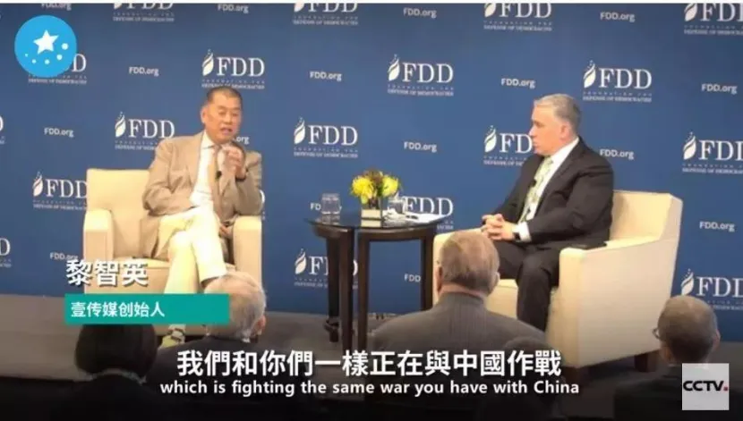 黎智英公然宣稱“香港是在為美國而戰 ”。