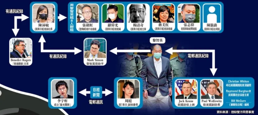 為博取外部支持,黎智英頻繁“赴美求援”,不僅與時任美國副總統彭斯、時任國務卿蓬佩奧、 時任眾議長 佩洛西等反華政客密切互動,還 通過中情局前僱員馬克·西蒙 投敵餵料,為美西方炮製涉港議題提供所謂 “ 依據”, 構建了一張有組織、有目標、有計劃的反中亂港網絡 。
