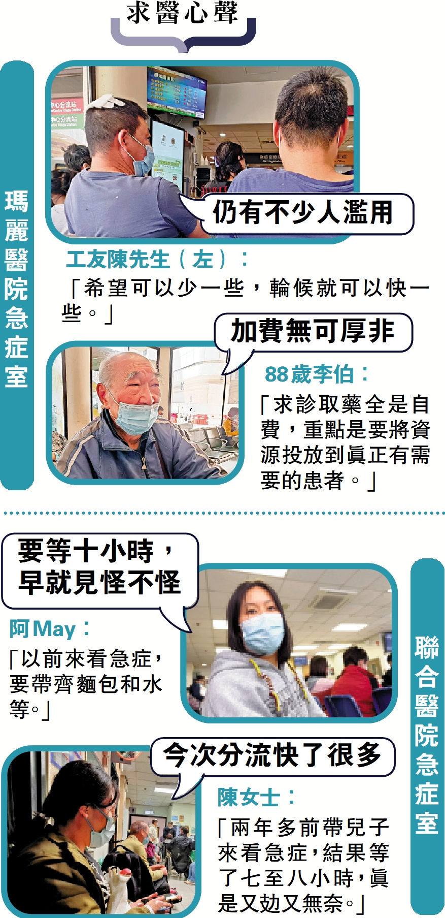 不過,也有病人家屬坦言,新收費構成經濟壓力。一名長者表示,晚間帶同孫兒到急症室求診是迫於無奈,日後若然自己只是普通感冒,會考慮先自行服藥,而非立即前往急症室。