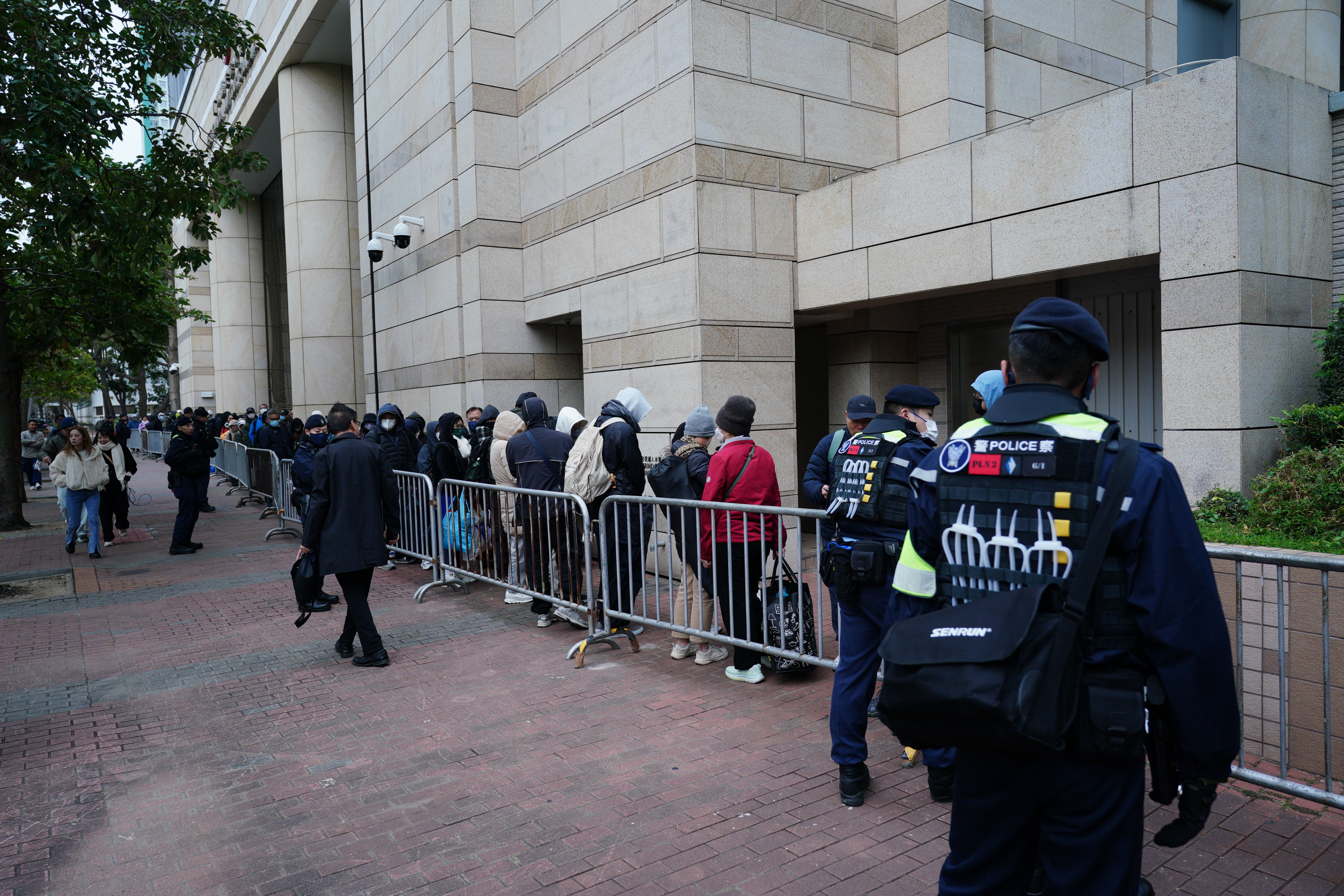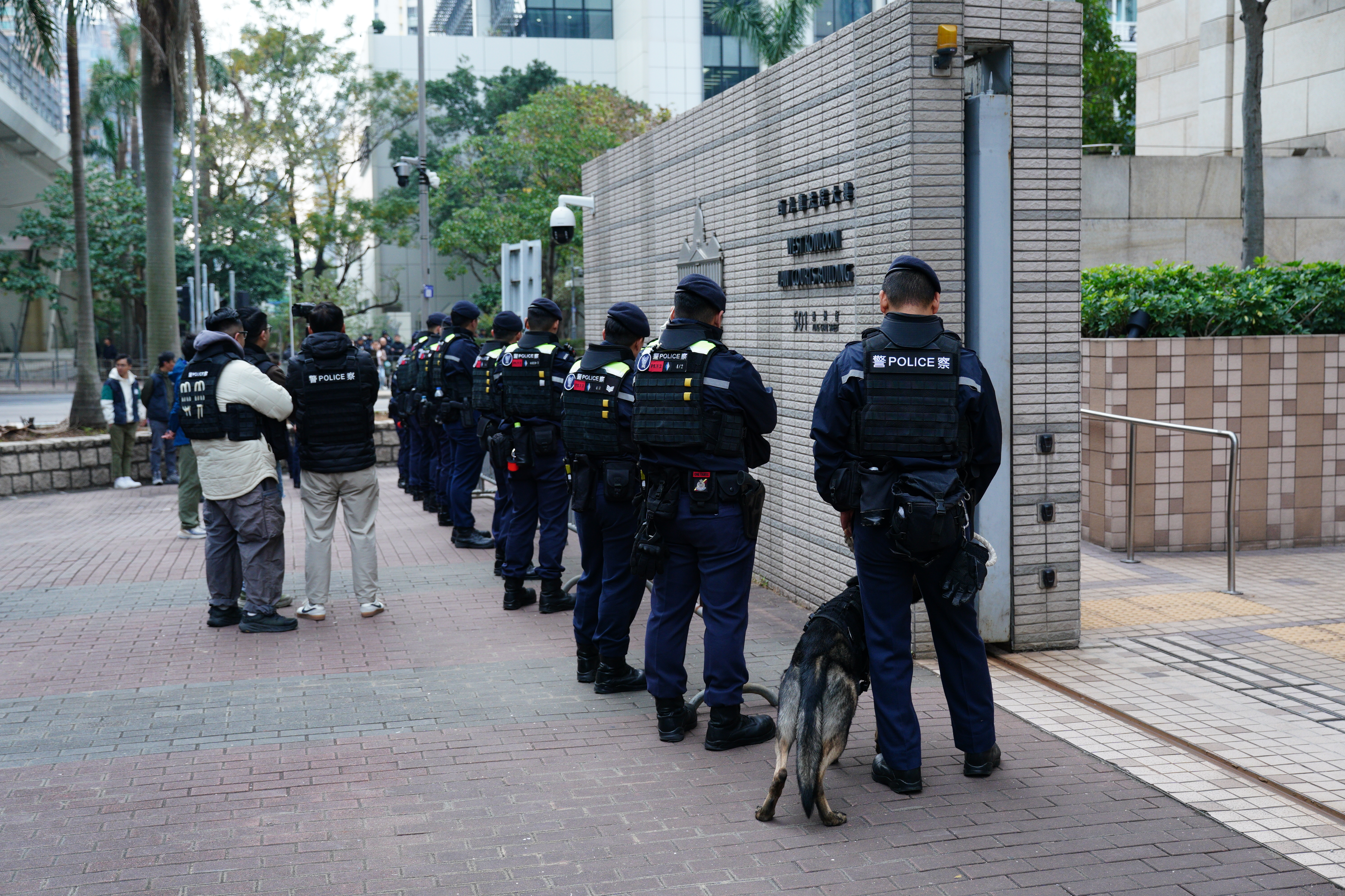 9時55分前後,李卓人與何俊仁先後進入被告席。李卓人身穿黑色外套,多次望向公眾席。何俊仁穿黑色外套,望向前方,時而面露微笑。鄒幸彤10時進入被告席,身穿卡其色外套,在與辯護律師陳政龍團隊交流後,才徐徐坐下。