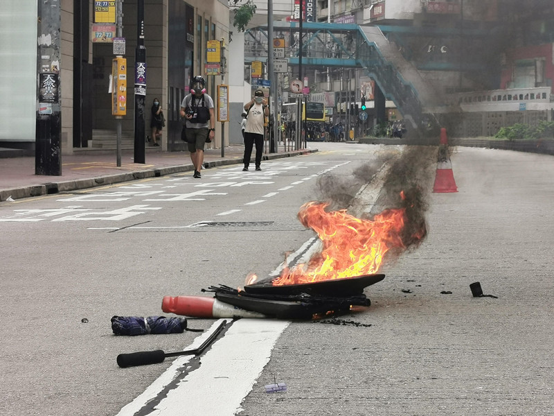 暴徒在銅鑼灣灣仔堵路縱火