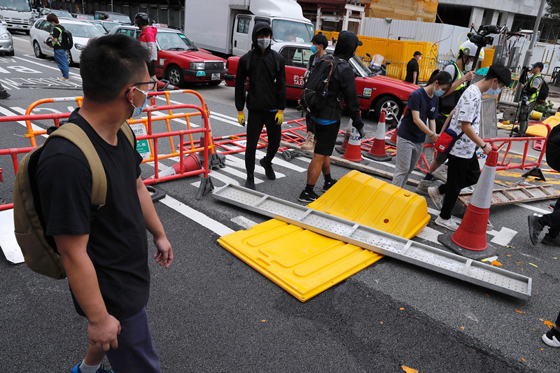下午約2時,有暴徒在灣仔軒尼詩道一帶以硬物擊毀交通燈。另有一批暴徒將路邊搭建的竹棚拆毀,把大量竹枝搬出駱克道,亦有暴徒將路邊石頭、花槽植物及雨傘放在路中心,阻塞行車線。暴徒又在灣仔一帶以垃圾桶等雜物堵塞多條馬路,原本用作道路工程用途的雪糕筒、水馬及圍欄散布地上。警方在現場採取果斷拘捕行動。
