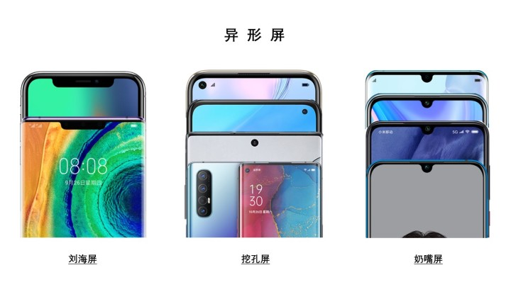 2018年,OPPO等國産廠商推出了“水滴屏”;屏幕切割工藝愈發成熟之後,珍珠屏、挖孔屏、瀑布屏相繼出現,成為華為、小米、三星等廠商接連採用的異形屏解決方案。雖然已無限接近全面屏形態,但仍然未能實現100%的完美屏佔比。