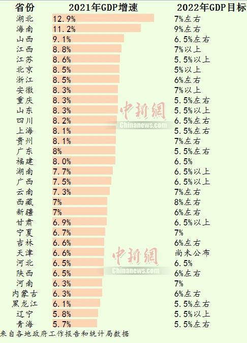 山西、湖北等多個省份表示會力爭更好結果。受益於煤炭價格上漲,煤炭大省山西2021年GDP增速達到9.1%,衝到全國第三,經濟總量邁上兩萬億新台階。「煤飛色舞」的山西2022年GDP目標為6.5%左右,並表示在實際工作中儘可能爭取更好結果。