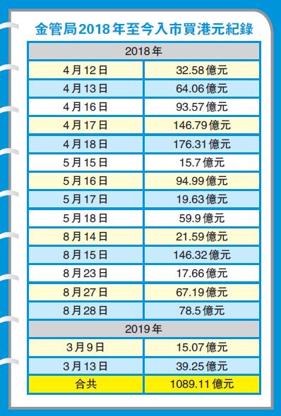 金管局由去年4月至今,持續在市場「沽美元、買港元」,計及昨日入市買入39.25億元,金管局合共在市場買入1089.11億元。也因如此,金管局於去年9月底,首次上調最優惠利率(P),為2008年金融海嘯以來首次。