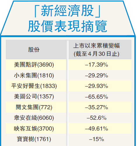 儘管市場一片唱好「新經濟」浪潮,但大多數「新經濟股」仍然難逃「高開低走」的命運。自去年下半年以來,「新經濟股」的股價多呈現「先揚後挫」、「越跌越急」的走勢。