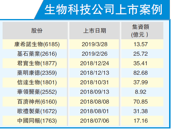 儘管港交所在過去一年,共有40家「新經濟」公司上市,共計融資額約1504億元,但當中只有9家生物科技公司,和2家WVR公司。而在該9家生物科技公司當中,只有7家是運用新上市制度,餘下2家則沿用舊制。港交所表示,上市改革帶領生物科技新生態圈開始成形,支持香港逐步發展為生物科技及創新公司的搖籃。