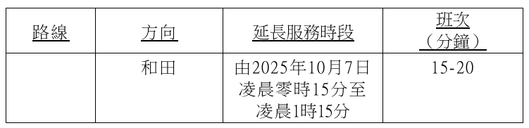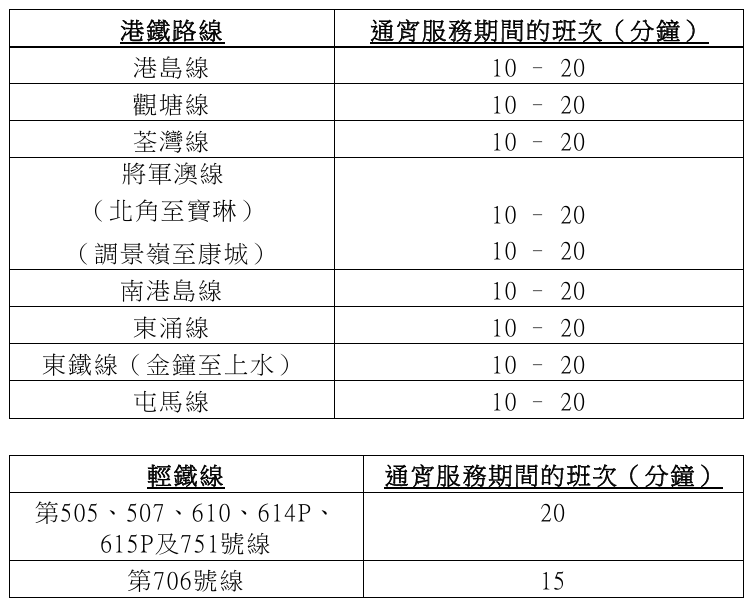 • 電車會延長服務至翌日凌晨1時,並會因應乘客需求情況加強服務;