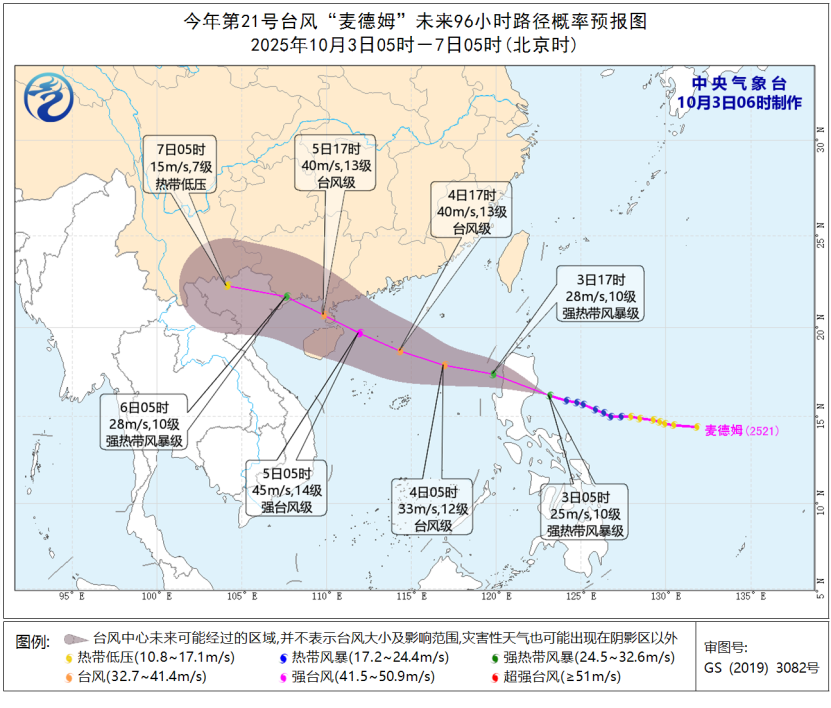 氣象專家提醒,颱風「麥德姆」將移入我國南海海域,3日夜間起至7日將給南海中北部及華南南部等地帶來明顯風雨,海上船隻應及時回港避風,公眾需提前做好防颱風措施,密切關注氣象部門發布的最新預報預警信息。