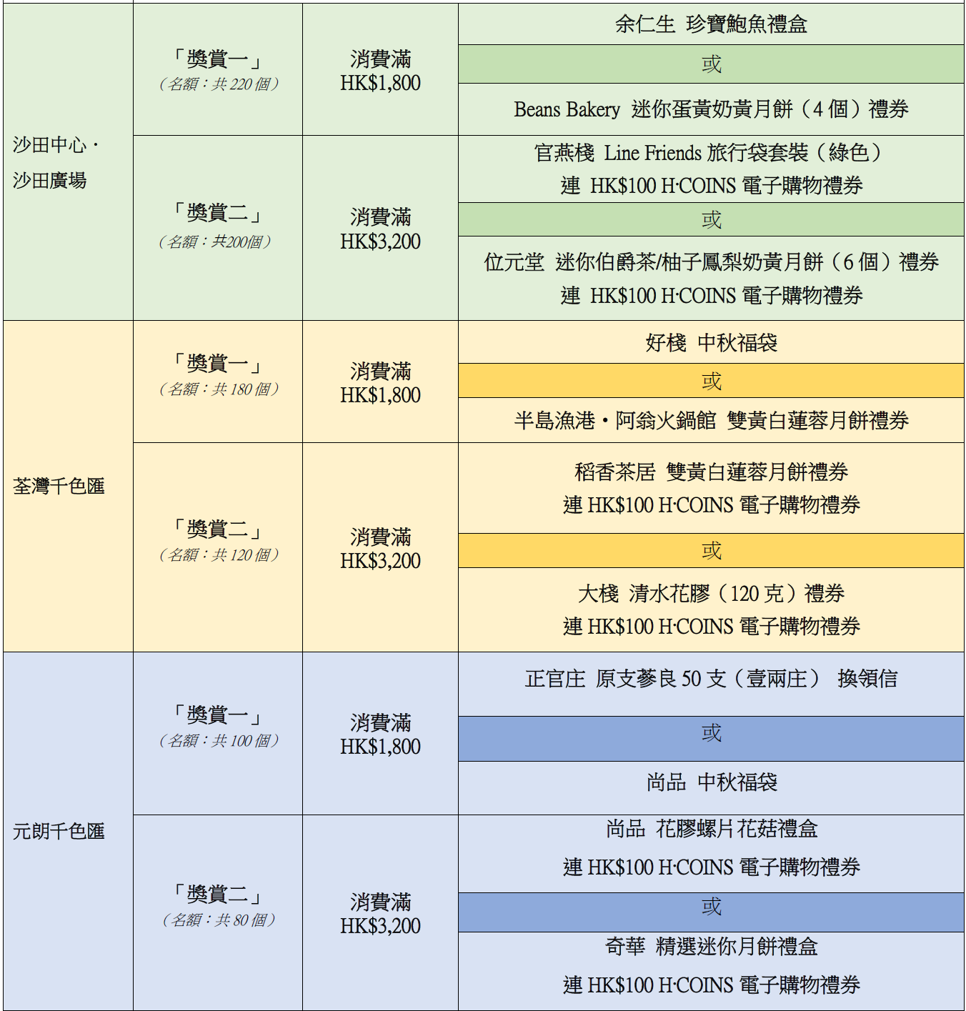 地點:沙田廣場3樓禮賓部、荃灣千色匯一期1樓禮賓部、元朗千色匯地下禮賓部