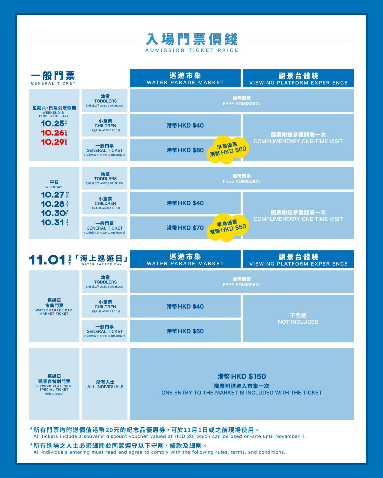 - 巡遊市集:上午10時至晚上10時(最後入場時間為晚上8時正)