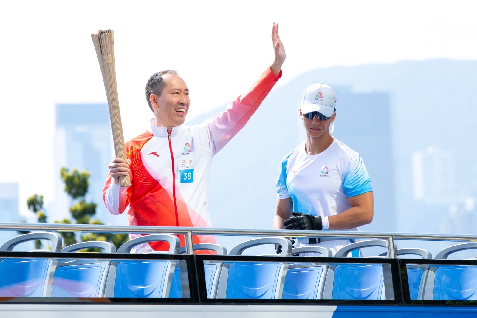 【識港網訊】第十五屆全國運動會香港賽區火炬接力傳遞活動今早(11月2日)舉行。火炬由政府總部出發,橫跨維多利亞港,最終抵達啟德體育園中央廣場。第38棒火炬手、信和集團主席黃永光表示,能夠擔任全運會火炬手之一,是莫大的榮譽,衷心感謝中央政府和香港特區政府給予他這個寶貴機會,也感謝組委會成功籌辦這場盛事。
