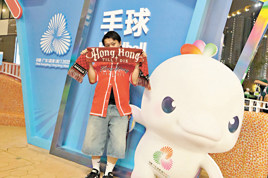 「香港、香港」、「We Are Hong Kong」,穿上紅色打氣球衣的觀眾傳來熟悉的吶喊聲,當中包括叫得聲嘶力竭的Monkey。這名港足球迷自二月起便受手球隊隊長謝永輝(Freddie)所託,為手球隊營造如港足般超強主場氣勢。