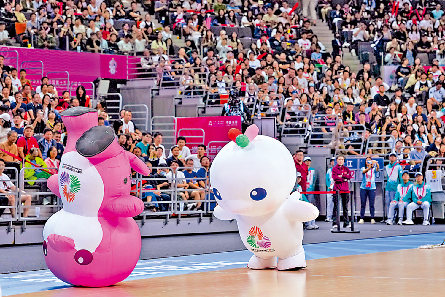 另一家東莞企業、哈一代玩具股份有限公司製作了吉祥物形象的挎包。公司董事周彩霞表示,「我們還給吉祥物增加了『換裝』概念,吉祥物手上的運動器材也能隨時更換,可以為不同項目『打氣』,也很火」。