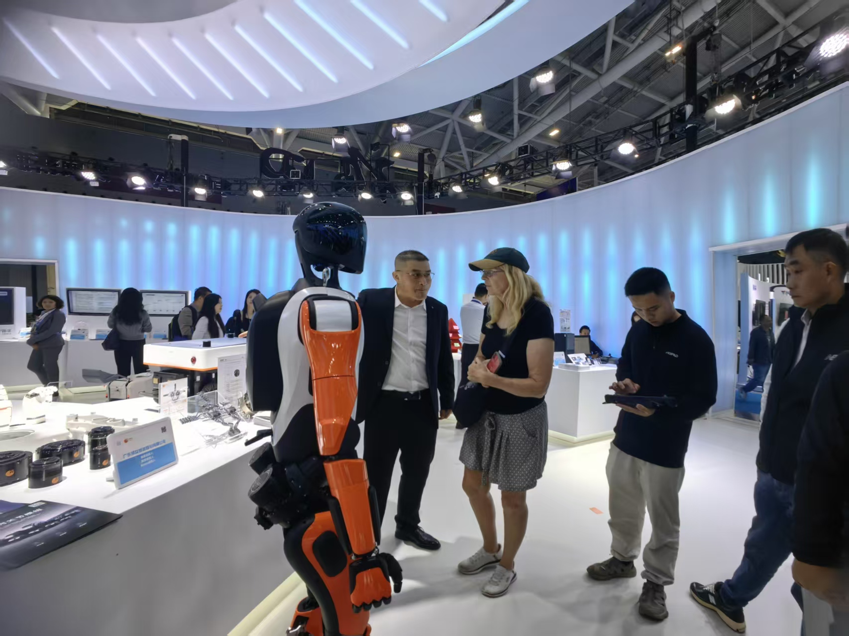 福田展區八大互動點位覆蓋視聽、競技、醫療、情感等多個維度,讓觀眾親身感受科技的溫度與力度。在機器人中心區,由廣東領益製造自主研發的人形機器人Aimas,以超高的語音識別準確率和靈巧手操作,完成迎賓、指引等任務,成為真正「能幹活」的數字員工。廣東領益製造股份有限公司銷售總監陳天平表示:「企業在高交會上收穫滿滿,不僅得到了很多信息的反饋,還獲得了一些意向合作的訂單,未來將把這款機器人設計優化、算法優化,以更盡快地導入場景應用。」