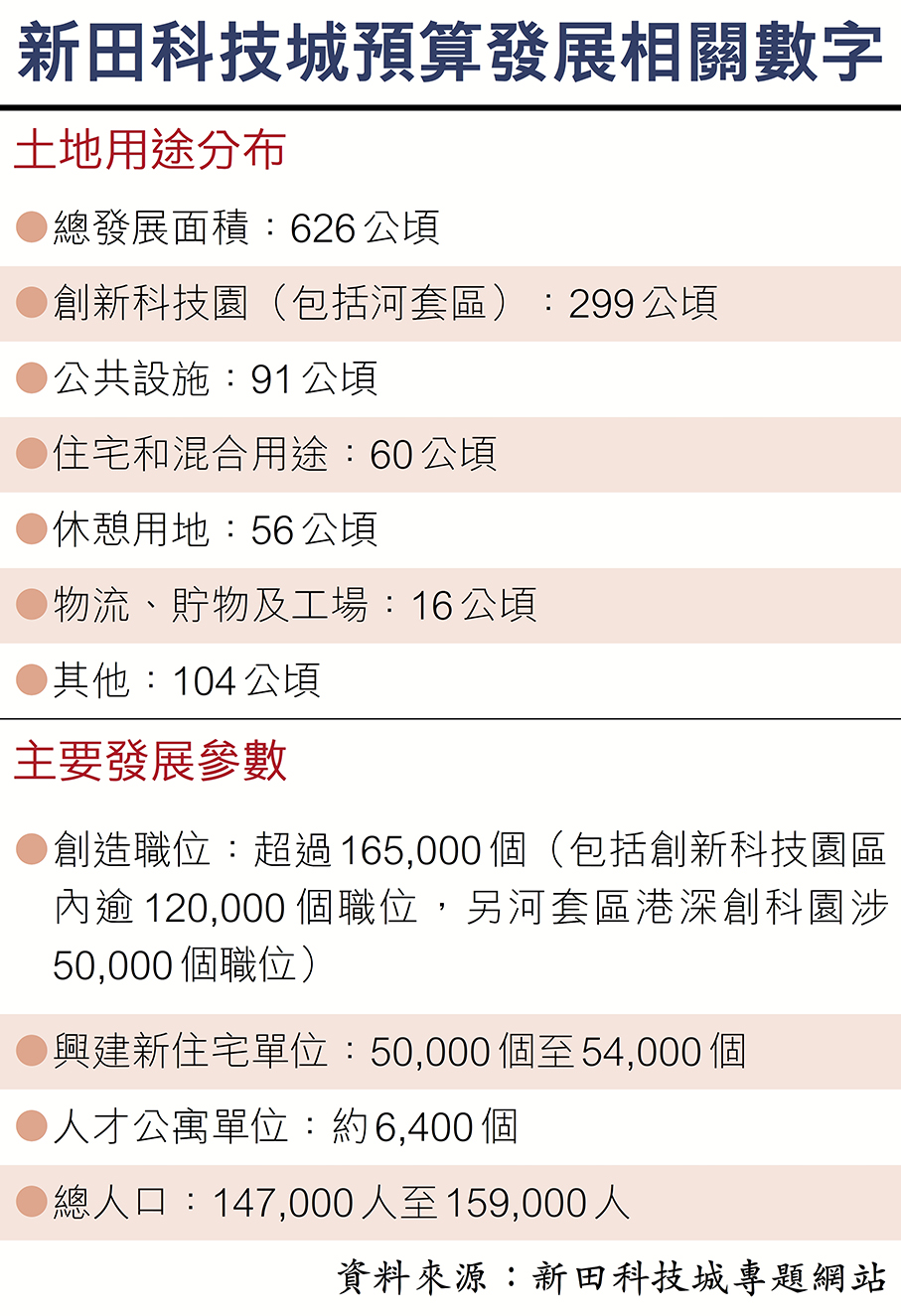 在發展模式方面,特區政府會遵照「有為政府」加上「高效市場」的大原則,並建議成立一家平台公司,他指平台公司可以參考現在科學園或數碼港的形式,「一方面加強政府的引領,保證長期的規劃,同時要充分借助市場的力量、市場的資源、市場的開發速度和效果。」目標是政府與市場相結合,能高速度、高質量地建立起新田科技城的創科產業。