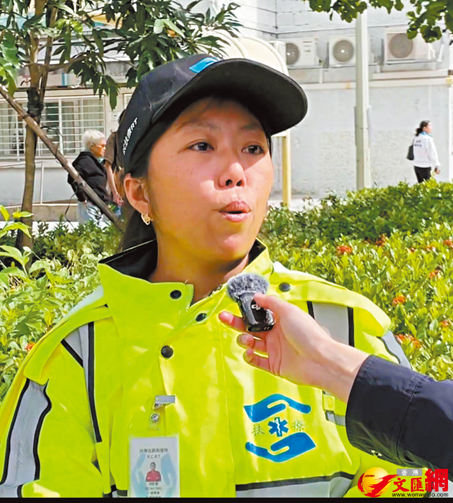 民間救援組織「扶療志願救援隊」隊員何家瑩前晚便協助分派物資送到災場,為消防員送餐,她表示多虧市民一呼百應,熱心運送物資,展現香港充滿愛心的一面。