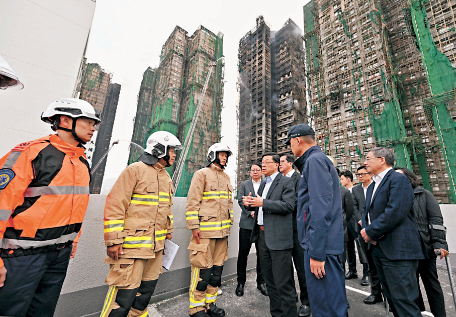 李家超昨日早上再次召開跨部門會議,統籌全體政策局和各部門積極從四方面推動全面跟進火災的應對工作,包括滅火和救援被困的居民、救治傷者、支援善後及全面調查。下午,他又視察火災現場最新情況,其間聽取了消防處和現場人員的匯報。