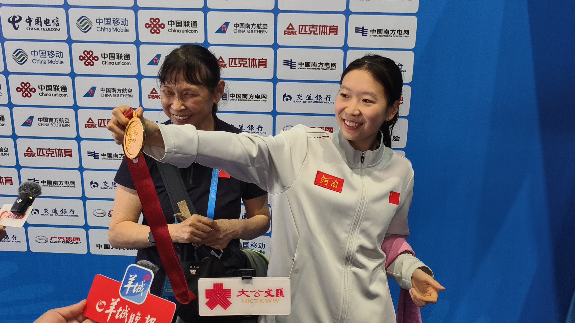 河南隊劉夢妍展示自己的殘特奧會金牌。(大公文匯網記者胡永愛攝)