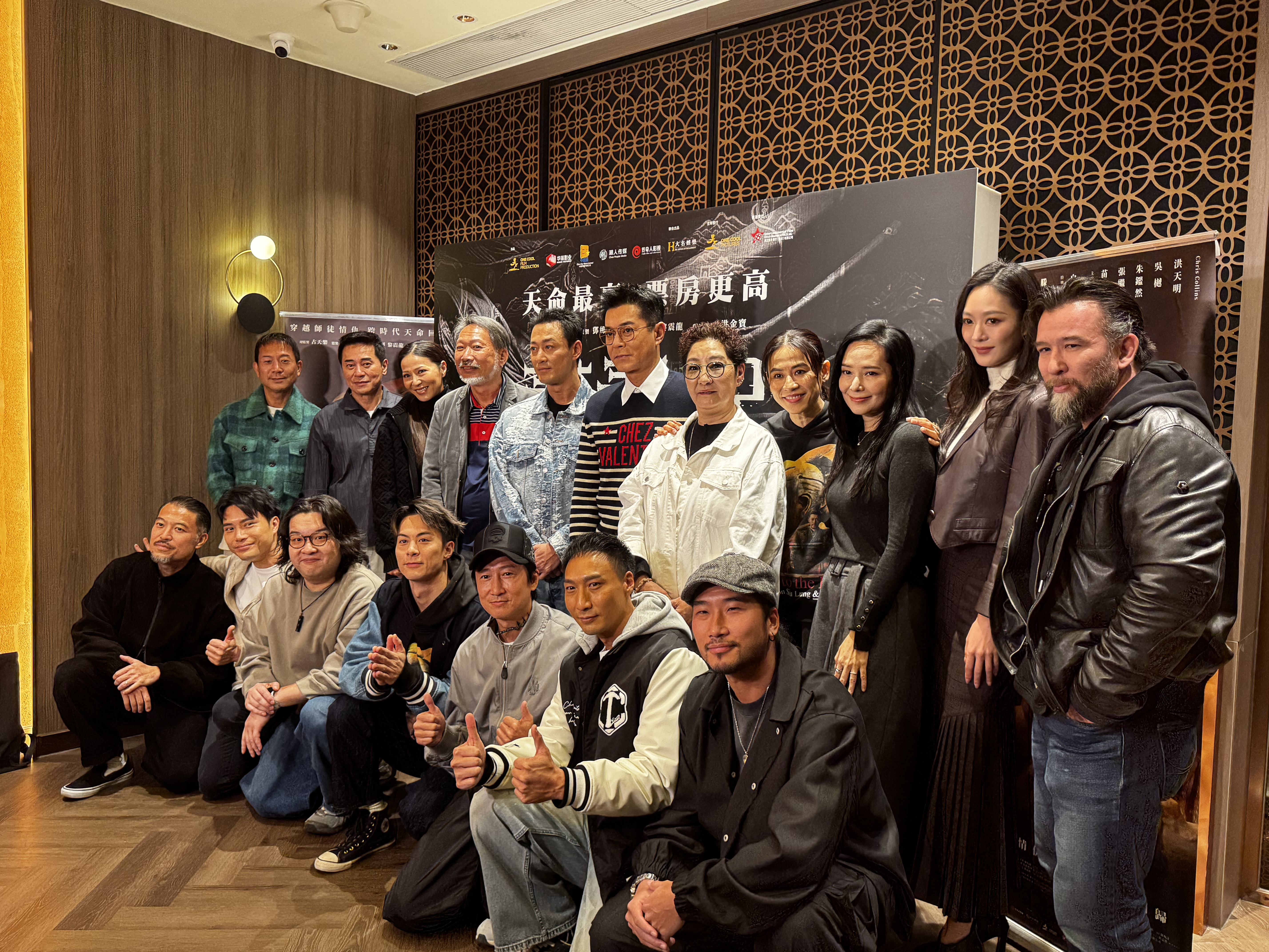 票房報捷,古天樂心情大好。在與宣萱、郭羨妮及朱鑑然合影「全家福」時,更重現25年前劇集版的幽默本色,俏皮地向鏡頭送出飛吻,引得現場歡笑不斷。