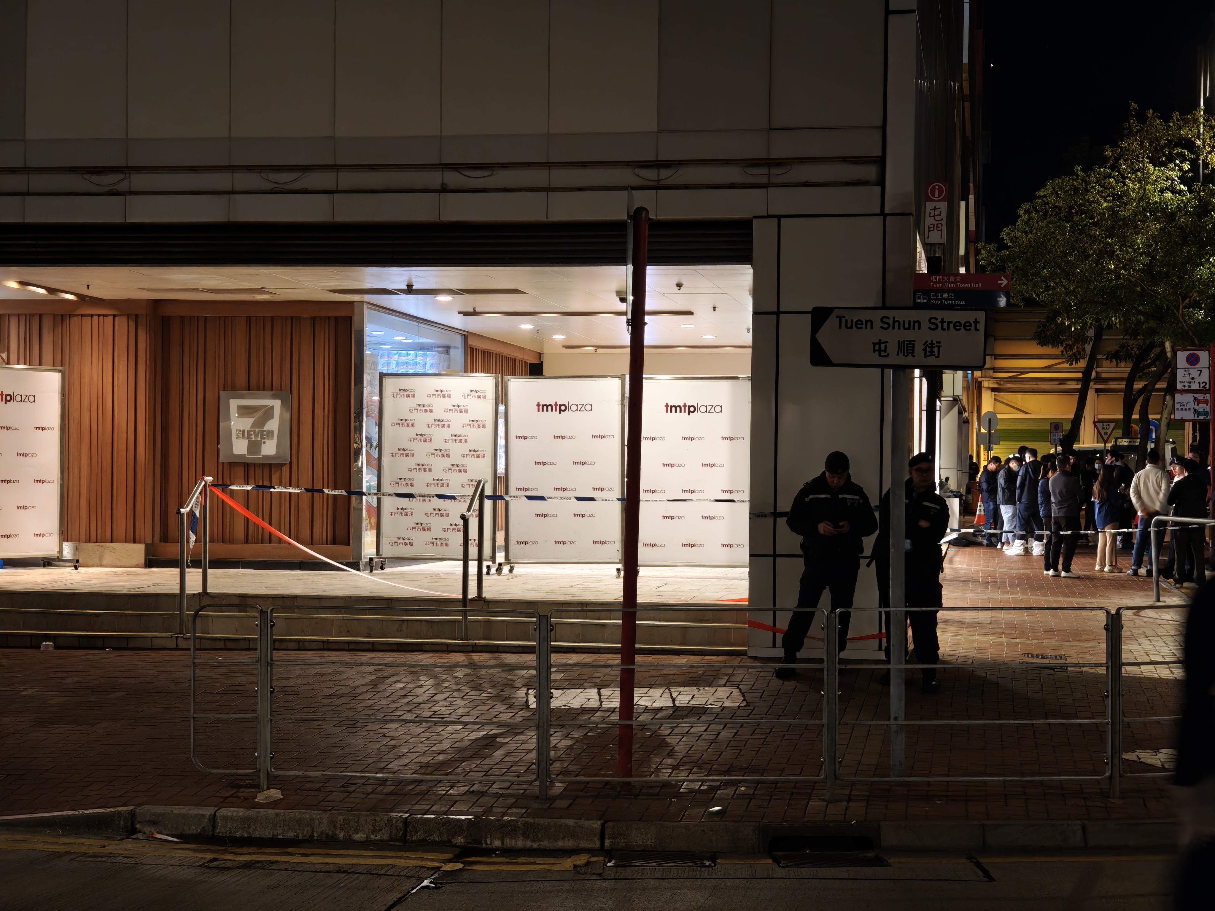 警方即時向該名男子發出口頭警告,但無效。隨後,警方向該名男子發射胡椒水劑,對方亦未理會,並持刀衝入商場,並由商場另一出口離開。男子步出商場後隨即挾持一名女途人,並企圖持刀襲擊該名女子。警務人員再次向男子發出警告無效後,兩名衝鋒隊人員分別向該男子各開一槍,男子中槍後倒地,被警方制服。警員隨即救出被挾持的女途人,並即時為中槍男子進行急救,隨後將其送往屯門醫院搶救。惜該名男子延至晚上8時40分不治身亡。送院時,男子胸部及右肩中槍,而女途人亦受傷送院,初步可見有擦傷,尚未知是否有其他傷情,現正在醫院接受治療。