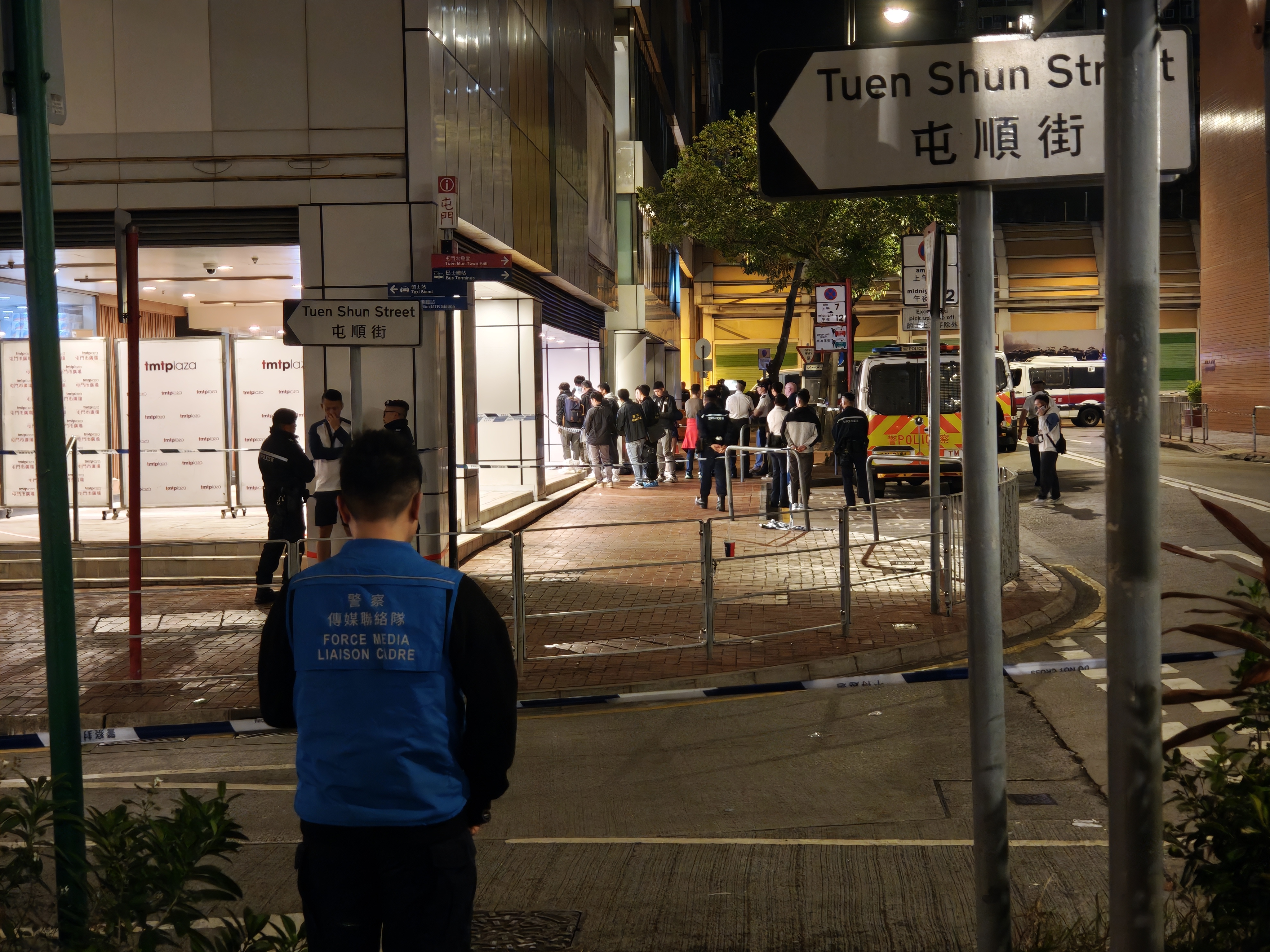 鍾麗詒表示,昨日傍晚大概7時10分,警方接獲市民報案,指一名可疑男子於屯門市廣場一間商店拿走一把刀。新界北衝鋒隊人員迅速趕往現場,於屯門市廣場外屯順街發現該男子手持一把12寸長刀,當時該男子正向多名途人揮舞武器,造成恐慌,路人紛紛避開。