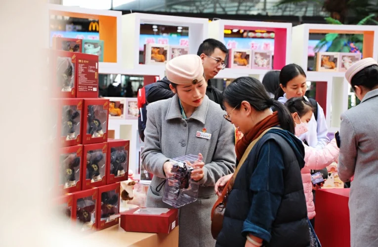 萌趣潮玩吸引不少旅客駐足圍觀、拍照打卡。正在候車的王小姐拿起一款「金鬃披霞」毛絨包掛愛不釋手:「顏色太喜慶了,摸起來軟乎乎,掛在包上既有春節氛圍感,又有『勢不可擋』的好彩頭!」旅客張先生則對冰箱貼興趣濃厚:「把春晚創意做成小巧精緻的紀念品,很有意思,我準備多買幾款親戚朋友,讓他們也感受這份新春驚喜。」
