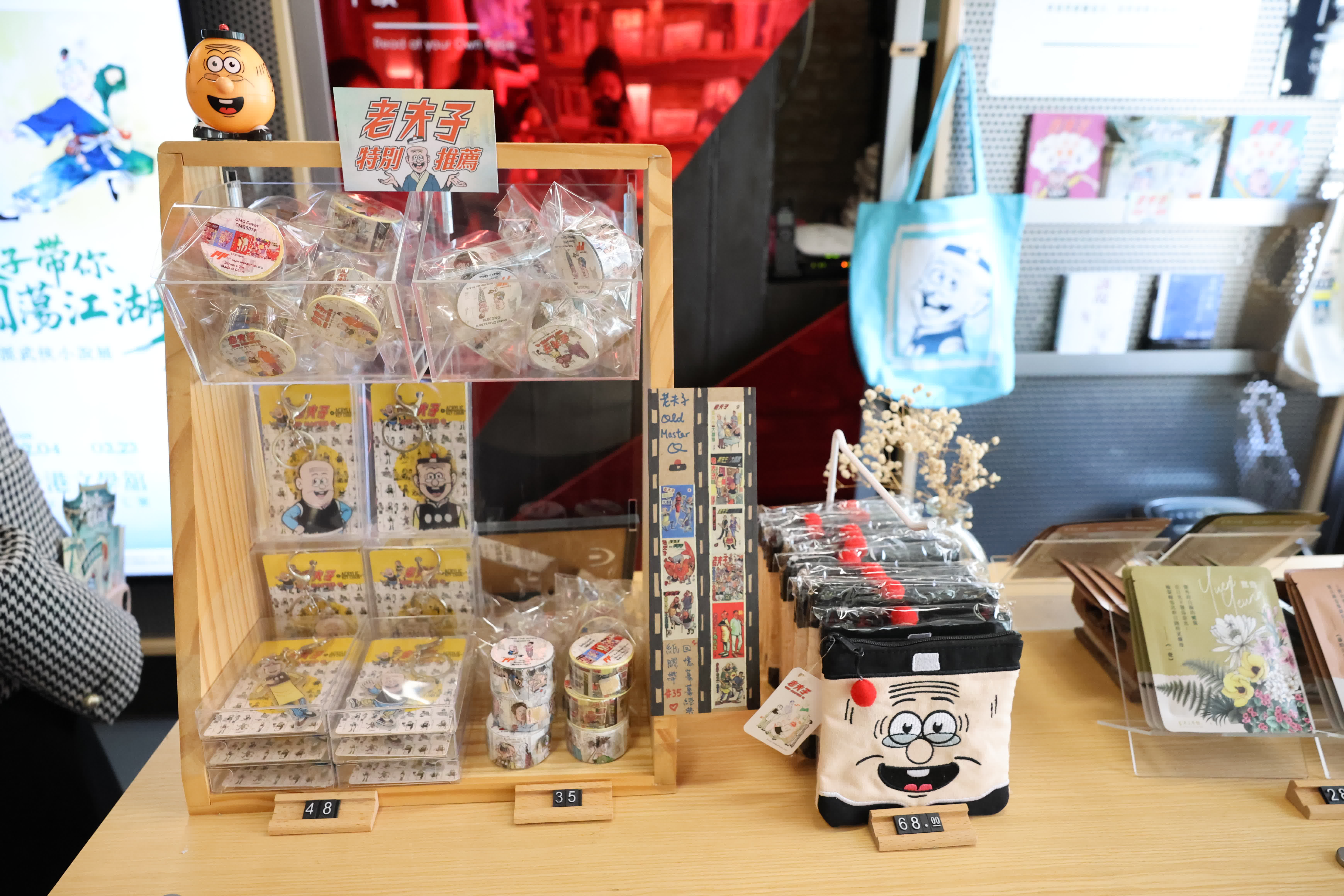 展區靠近三樓電梯間設置「展覽限定印章」,觀眾可在場刊最後一頁蓋上,作為參觀留念。同層「隨心書店」亦有展覽限定的「老夫子特別推薦」周邊商品,包括造型夾子、老夫子角色布袋、鑰匙圈及膠帶等。展覽期間,香港文學舘亦將舉辦多場展覽主題相關的文化沙龍,邀請學者、作家及文化工作者分享見解。