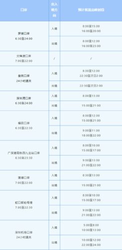 「深圳口岸發布」公布長假期間各口岸預計高峰時段: