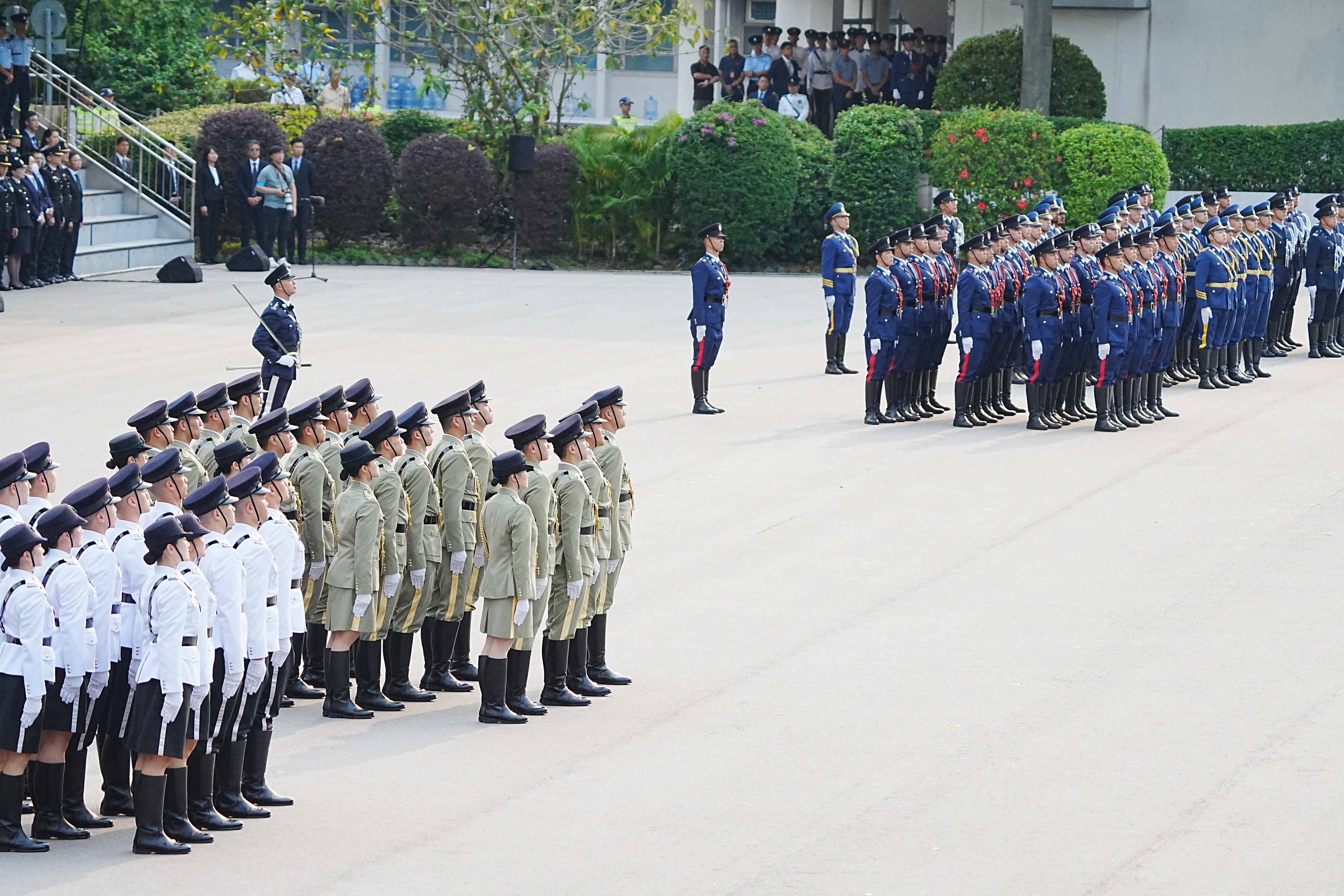 【識港網訊】為配合「全民國家安全教育日」,保安局帶領轄下紀律部隊今日(15日)早上在香港警察學院聯合舉行升旗儀式,由政務司司長陳國基主禮,保安局局長鄧炳強、警務處處長周一鳴、入境處處長郭俊峯、消防處處長楊恩健等紀律部隊首長均有出席。