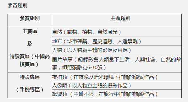 成人組、青少年組及手機組各設冠軍、亞軍、季軍各1名,佳作各3名;手機組特設「想像創意獎」(3名),不分名次,可獲得特別獎(須勾選「本作品使用OPPO系列手機所拍攝」)