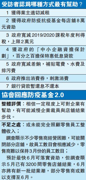 預計最快6月可落實資助,但調查顯示5月已有3200間零售店舖結業,6月亦將有新一批結業潮,部分零售商或難以支撐至6月。