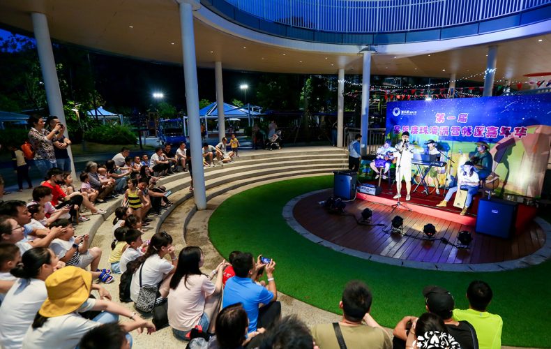 傍晚19時15分,享用過美味燒烤晚餐後,在星奇塔無動力世界勇氣大本營,大家迎來了開營儀式。在簡單的開營介紹,「星光音樂派對」正式開始。由星樂度戶外公共教育專業導師組成的「跑調樂隊」奏響了歡快的旋律。伴隨着星光與蟲鳴,大朋友和小朋友們迎着微風與音符起舞,度過了一個美好的傍晚。