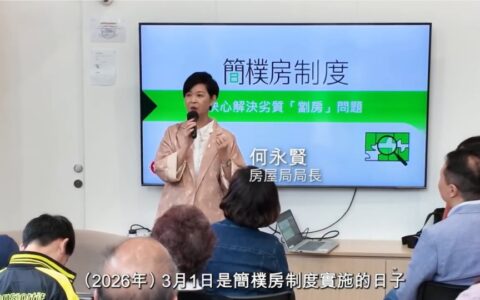 何永賢赴社區客廳向劏房戶介紹
