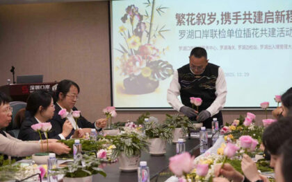 12月29日,在深圳市口岸辦指導下,羅湖口岸管理服務中心聯合羅湖海關、羅湖邊檢站、羅湖出入境管理大隊,共同開展「繁花敘歲,攜手共建啟新程」主題插花活動。