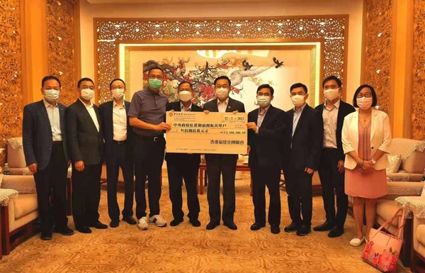 7月22日下午,香港福建社團聯會主席吳換炎,副主席兼秘書長施榮忻,副主席丁良輝、黃自強、林潞、柯文華、洪定騰,常務副秘書長兼總幹事周珊珊等,前往中聯辦,向賑災專戶捐贈380萬港元,幫助河南受災群眾生活安置、災後衛生防疫等提供服務,以實際行動彰顯愛國愛港社團的責任擔當,同時代表了120萬居港閩籍鄉親對河南災民的關心以及早日戰勝水災的期盼。