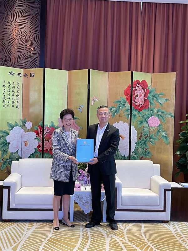 在金融方面,她在施政報告中表明特區政府支持香港交易所與廣州期貨交易所就碳排放交易相關金融產品開展合作。財政司司長陳茂波、商務及經濟發展局局長邱騰華、行政長官辦公室主任陳國基和粵港澳大灣區發展專員袁民忠亦有出席會面。