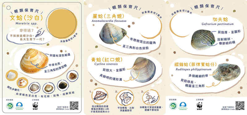 1.細蜆長留 ─ 不要帶走體形太小的蜆隻(參考「蜆類保育尺」)