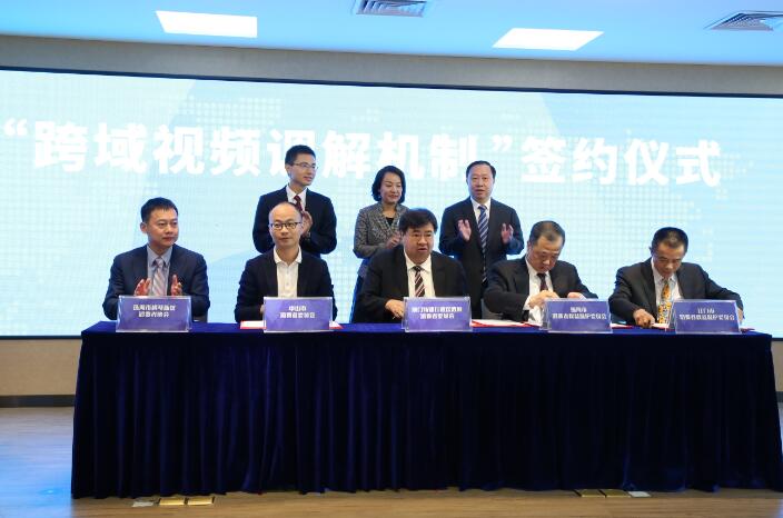 “2019年珠海(橫琴) 中山 江門 澳門消費維權合作第二次聯席會議”於11月29日在橫琴召開。會議期間,橫琴新區推出了“澳門、珠海(橫琴)、中山、江門跨域視頻調解機制”以及“澳門、橫琴消費領域信用體系共建基地”兩項首創的消費維權合作新機制,為實現粵港澳大灣區消費維權一體化提供有力保障。